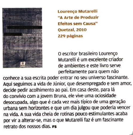 imprensa Lourenço Mutarelli, criador de ambientes 26.03.10 Quetzal Na coluna de Fernando Sobral, hoje no Jornal de Negócios. Tags:imprensalourenço mutarelli link do post comentar favorito