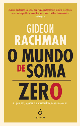 Este livro define os termos de um novo debate. Gideon Rachman mostra claramente que ao otimismo decorrente do colapso da União Soviética, sucedeu, no rescaldo da grande crise financeira, uma profunda ansiedade. Neste livro obrigatório, Rachman sustenta que a política internacional se tornou muito mais perigosa e volátil e explica o que se pode fazer para contrariar esta lógica debilitante de um mundo soma zero.